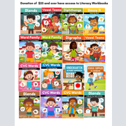 Literacy Workbooks for Kids for a donation of $25 and over. Have access to an unlimited download. A link will be provided.